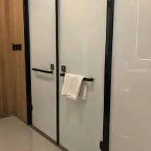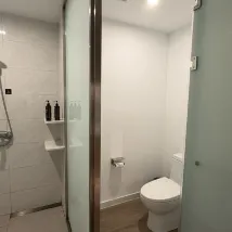I suggest adding a small night light or floor-level LED strip lighting. The main bathroom light is too bright at night, but with all the lights off, it's completely dark. We had to open the curtains to rely on the faint outdoor light for some visibility.