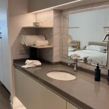 Both the balcony and the shower room have areas for drying clothes, and the double sinks are very convenient.