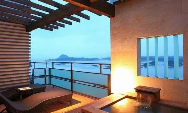 部屋が広い。景色が最高。 天井が高くて、部屋に付いている露天風呂から天然温泉が♨️好きなだけ堪能出来る。 しやしんを見てもらうと一目瞭然だが、海に浮かぶ島々が綺麗。