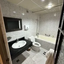 The bed was comfortable enough to sleep on. The toilet was spacious and nice. Although it’s a bit old, we had a great stay.❤️