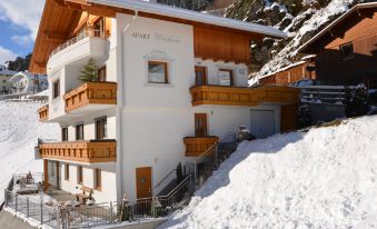 Apartment block "Apart Wechner". In the district of Hof 2 km from the centre of Kappl, 10 km from the centre of Ischgl, 20 km from the centre of Landeck, in a sunny position on a slope. For shared use: barbecue. In the house: storage room for skis, central heating system, drying room. Bread roll service. Parking on the premises. Shop 2 km, grocery 2 km, bus stop "Kappl Hof" 150 m, railway station "Landeck-Zams Bahnhof" 23.7 km. Ski lift 3.5 km, gondola lift 3.5 km, ski bus stop 150 m. Please note: baby equipment on request (included). In case of good snow conditions, the house is accessible on skis. The owner lives in the same residence. Member for Silvretta Card Premium: valid from summer 2023 - unlimited use of all open mountain railways and local public transport in Paznaun, Samnaun and Montafon/Brandnertal, as well as unlimited use of the Silvretta High Alpine Road. "Wechner", 3-room apartment 50 m2, on the ground floor. Very tasteful and cosy furnishings: walk-through room with 1 double bed. 1 double bedroom with shower/WC. Kitchen-/living room (oven, dishwasher, 4 ceramic glass hob hotplates, toaster, kettle, microwave, electric coffee machine, Capsules for coffee machine (Nespresso) extra) with dining table, satellite TV. Shower/WC. Terrace, small garden. Facilities: Internet (WiFi, free). Please note: one double bedroom is outside the apartment. Non-smokers only. Smoke alarm, fire extinguisher.