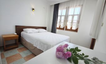 Yoğun bir dönemde son anda onlarda da rezervasyon iptalıolmasi sayesinde yer bulduk .Çok sansliymışız, ilk andan itibaren Erdem Bey'in profesyonel ve pozitif yaklaşımı ile karşılaşınca doğru yere geldiğimizi anladık.Tertemiz oda bembeyaz çarsaflar, sicak su, problemsiz çalışan klima, muhteşem manzara, Erdem Bey'in eşiyle hazırladığı muhtesem kahvaltı mümkün olabilecek her ihtiyacın üzerinde titizlikle durulmuş, özenilmiş olmasi bizi çok memnun etti.Ayrıca pansiyon konumu itibariyle kalabalık ve gürültülü merkezden uzak, kaş antik anfitiyatrosuna çok yakın , görece sakin ve temiz plajlar hemen önünde ve yine merkeze göre daha serin bir noktada.Daha ne olsun! Yine gelecek biz!