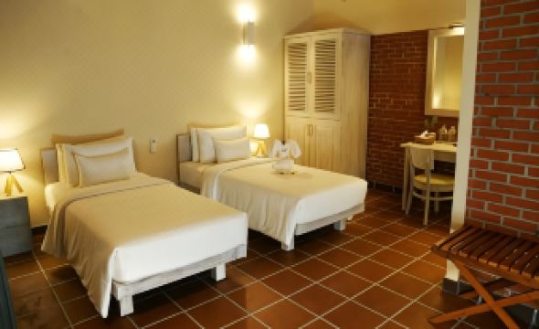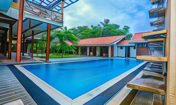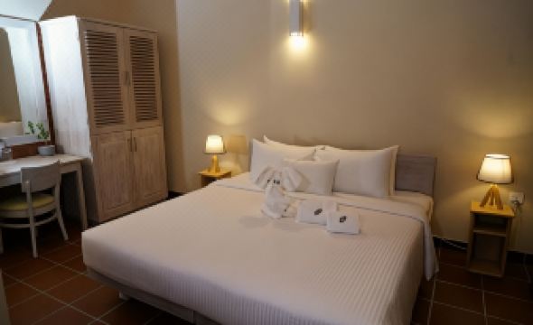 There is very little in the immediate area, an atm and some basic cafes as it’s an airport hotel. Check in was easy and two kind lads took my bags to my room. It was fine with tea/coffee, toiletries (no toothbrush) but a big bottle of water, TV and effective AC. There were some mosquitos in the room so some protection is advised in addition to the plug in already in place. I got no bites. I would suggest an eye pad as some light does come through. Good small bathroom. Had a couple of peaceful hours by the small pool (towels provided) where shade is available on a few comfortable sun beds. Restaurant was excellent for dinner, drinks, value and service. The set breakfast was fruit, omelette with toast, tomato, mushrooms, sausages and toast with tea/coffee and was very good. The free shuttle was brilliant, a smart car straight after checking out - they asked the time of departure when I arrived. Highly recommended decent hotel for a night before arrival or departure flights.