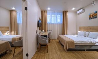 The rooms in the hotel are presented in several categories. 3 rooms of the highest category: A Two-room Junior Suite and a JUNIOR Suite with a balcony (JUNIOR SUITE) and 4 rooms of the First category: Superior standard DBL and TWIN, the interior of which is characterized by simplicity, precision and clarity of composition.