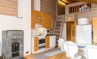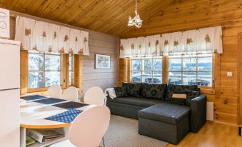 A semi-detached house located in the Ukkohalla tourism centre, 52m2 + loft 8m2, built in 1989, renovated in 2004. Kitchen, bedroom, loft, sauna, shower room/toilet, separate toilet, dressing room, storage, balcony, terrace, fireplace and firewood. 2 beds in the bedroom, 2 mattresses on the loft, a sofa-bed in the living room.