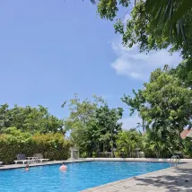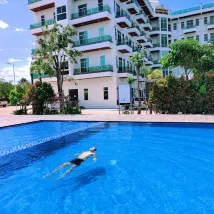 The surrounding is very quiet; the swimming pool is relatively clean and large, and the temperature is just right for swimming at night, not too cold or too hot; the parking space is large. However, it is not easy to dry the washed clothes.