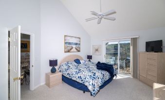 The master bedroom has access to the deck, a king-sized bed, two dressers, large walk-in closet and private full bath. The second bedroom has a queen bed, dresser, and large closet. The third bedroom has a queen bed and dresser. The loft overlooking the living room has a flat screen TV and seating area. The loft bedroom has a queen bed with private shower/bathroom. There's a mini fridge in the loft providing extra space for drinks/snacks.