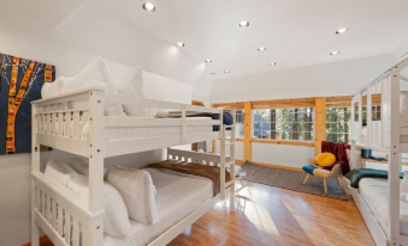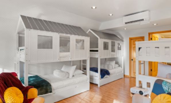 - Bedroom 4 (bottom floor): AC, 8 mattresses total: 2 twin size bunkbeds with trundle (6 mattresses) and 1 full size bunkbed (2 mattresses)