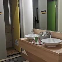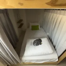 A very comfortable space with an exclusive shower room and washbasin, which is very suitable for a short stay when traveling alone. There are small refreshments in the public space for self-service, which is very considerate. The only drawback is that the air in the room is relatively poor, but overall CP Great value! I would like to stay there next time!