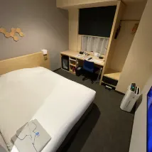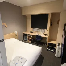 convenient location, around 3 minutes from JR. seems this is the only hotel close to JR. Room size normal but the window faced the wall of the next building . Okay on the whole.
