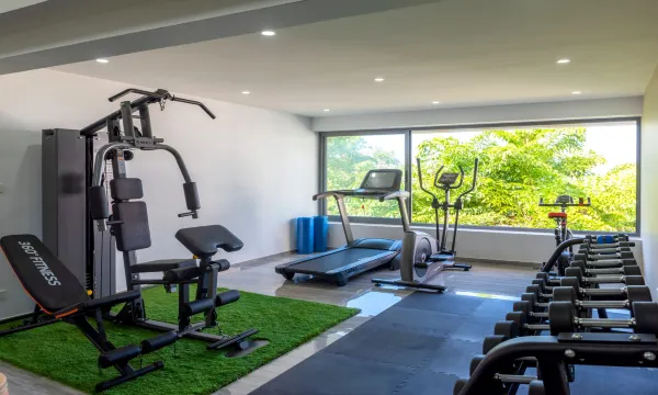 For wellness and entertainment, the villa offers a fitness room, gym, and boxing area.
