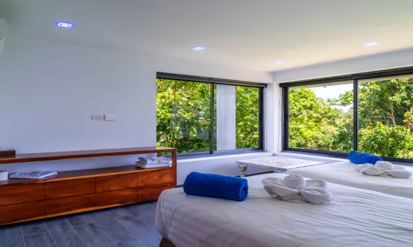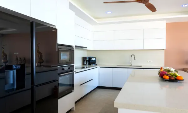 This villa features a stylish Modern Thai-Bali design and comes fully furnished with amenities such as a Snooker Pool Table, Safety box, coffee machine, microwave, oven, Smart LED TV 85', ceiling fans, air conditioning, cable TV with international channels, landline phones with unlimited international calls, etc... and king or king-plus size beds. All bedrooms and living rooms are air-conditioned for your comfort.