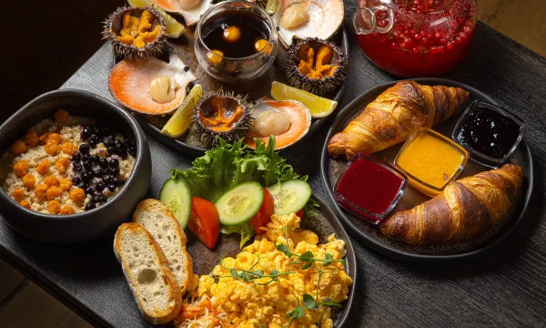 Country hotel 4* Residence "Arctic Lights" will make your vacation unforgettable! Spacious domed houses with a panoramic view will allow you to enjoy a beautiful view of the forest and the river. In winter, there is every chance to admire the northern lights without even leaving your home, sitting comfortably on the sofa with a cup (or glass) of your favorite drink... Each house has its own sauna for two, and on the terrace next to the house there is a hot vat for bathing. A chic breakfast is served - salmon, fresh vegetables and fruits, a choice of hot dishes. Also, on the territory of the hotel there is an equipped fire zone with everything necessary for cooking barbecue and other dishes on the grill. In a cozy cafe, you can have a delicious lunch or dinner, tasting dishes of the Arctic cuisine.