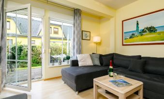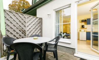 Apartment house. In the resort 550 m from the centre of Koserow, 600 m from the sea, 600 m from the beach. In the house: storage room for bicycles, central heating system. Parking on the premises. Supermarket 1.2 km, restaurant 400 m, bakery, café 350 m, bus stop 1.2 km, railway station 1.5 km, sandy beach 600 m, thermal baths "Bernsteintherme" 9 km. Golf course (18 hole) 18 km, surf school 9 km, minigolf 800 m. "Noah", 2-room apartment 35 m2, on the ground floor. Cosy furnishings: living/dining room with 1 sofabed and cable TV (flat screen), radio. Exit to the terrace. 1 room with 1 double bed. Kitchenette (mini-oven, 2 ceramic glass hob hotplates, toaster, kettle, microwave, electric coffee machine). Shower/WC. Terrace. Terrace furniture, electric barbecue. Facilities: children's high chair, baby cot. Internet (WiFi, free). Please note: non-smokers only. Smoke alarm.