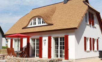 Schönes reedgedecktes Haus, große Terasse, großes Grundstück. Liegt am Rand der Siedlung direkt am Wald.