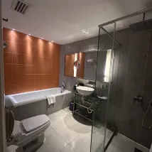 The room is huge. I particularly liked the toilet, where bath tub and separate shower were provided. The room has a large couch and an office table as well. The body shampoo they provided was of a pleasant long-lasting sage smell which I really really liked. Overall I’m very satisfied with the room.