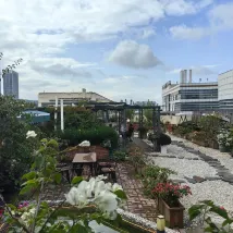 Ambiance: Excellent, with a beautiful rooftop garden.