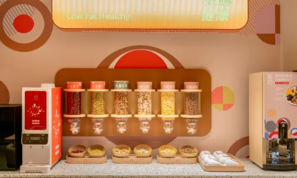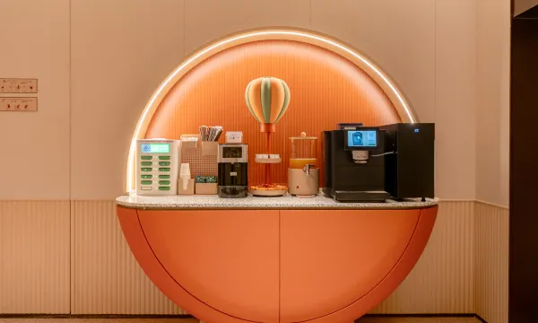 There's also a self-service area in the lobby where you can enjoy unlimited coffee, tea, juice, and some snacks, which was a huge bonus.