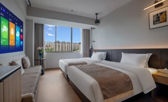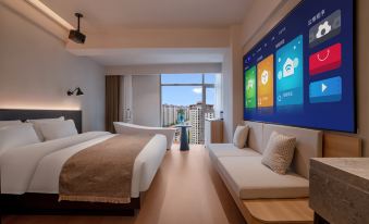 Our rooms are situated in a tranquil setting on the 8th floor, filled with natural light. Each room is equipped with a 100-inch large-screen projector and Youku VIP access, complemented by Xiaodu smart voice system, creating an immersive audio-visual experience. Select rooms also feature a bathtub and a mini fridge, while all rooms come with a smart toilet and a Lefein high-speed hair dryer. For a restful sleep, we provide pressure-relieving mattresses and pillows, along with 95% white goose down duvets.