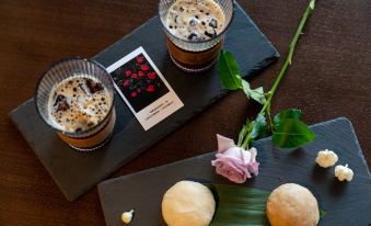We serve freshly baked flower pastries and freshly brewed coffee daily. A complimentary travel backpack—equipped with a power bank, umbrella, and other essentials—is also available for your use. In every room, you’ll find disposable bath towels and an instant heating kettle, all thoughtfully arranged to ensure your health and safety.