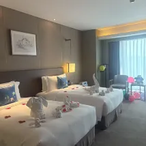 The rooms are excellent, and the service is incredibly thoughtful. Our family of four arrived in Kunming around 11 PM. We had booked the hotel in a rush and hadn't realized that the Executive King Room and Deluxe Suite we reserved were on different floors. As we were traveling with two young children, we really hoped to be on the same floor. The front desk manager was incredibly understanding and kindly upgraded us to two Executive Suites. We are so grateful!