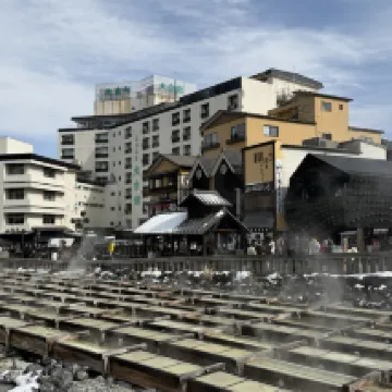 The hotel is incredibly luxurious, possibly the most luxurious hot spring hotel I've ever stayed in. I was immediately struck by its grandeur upon entering the lobby. The rooms and facilities throughout were spacious and upscale, providing an exceptionally comfortable stay. The Kusatsu Yubatake bath is about a ten-minute walk from the hotel, and it's especially beautiful at night – definitely worth experiencing. Breakfast and dinner are buffet style, and the food was excellent. By hotel standards, this hotel deserves full marks.