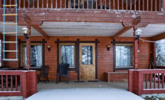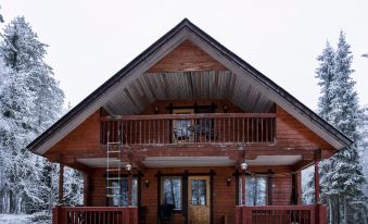 14 km north of Kuusamo, Ruka 23 km, lake Nissinjärvi about 30 m, log cabin built in 1989. Livingroom (fireplace), kitchen (baking oven), bedroom (bunk bed for 2 persons), bedroom (extendable bed 120x200 cm), shower room and toilet, electric sauna, open porch. In upstairs there are livingroom (bed 80x200 cm) and bedroom (2 beds á 80x200 cm), balcony with furniture towards the lake.