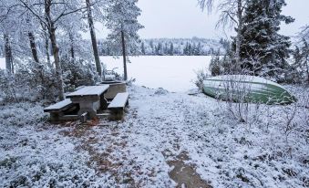 Reservations start at 17.00 and end at 12.00 (also in weekend bookings). Cozy log cabin by the lake of Nissinjärvi, in the lake is plenty of fish (whitefish, vendace, perch, pike, burbot). Cottage is particularly suitable for families with children, a peaceful courtyard where you can during the summer and autumn pick berries and autumn for example, possible to see the black grouse sitting in a tree. During winter you can ski, drive snowmobile or go ice fishing on the lake. From the cottage it's easy to visit Kuusamo town for shopping and Ruka to go skiing slopes. Beach is hard, sand/small rock, slightly deepening until 1,5 m and after that deepens sharply.