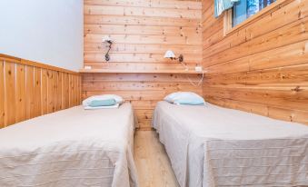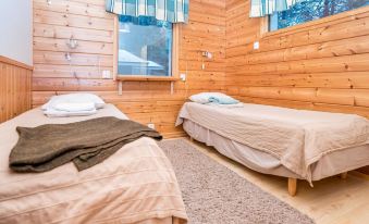 Log cottage, built in 2005, bedroom 1: 2 beds, bedroom 2: 2 beds, bedroom 3: 2 beds. Combined kitchen/ living room, electric sauna. Log cottage, situated by the pond Petäjälampi. Totally 6 cabins on the same yard. Cabins are located on the edge of the camping site (camping site open yearly during 1.6. - 30.9.). Spa Kuusamo Tropiikki / Kuusamo Golf 1.5 km by road (by walk 0.5 km). Excellent opportunities for hiking. Good fishing opportunities. Suitable for families, golf players and active people.