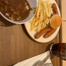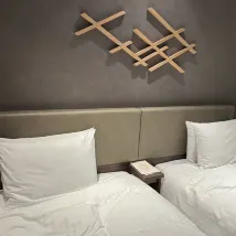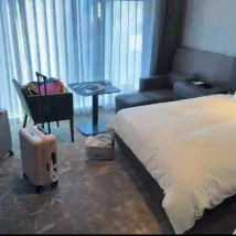 The room was spotless and well-equipped, though the space was quite limited. The staff were truly considerate; I wasn't sure how to sort the fruit, yogurt, and instant noodle packaging from my child's meal, and a hotel employee simply handed me a trash bag and offered to take care of it. For breakfast at the restaurant, the steak was my favorite, and my child enjoyed it too.