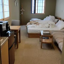 4-storey building, located in a quiet area 12 minutes leisurely walk from the station. The room is spacious, beds and pillows are comfortable. The only complaint is that it is very dusty, it seems that they clean superficially. There are not many restaurants nearby, there is a 7eleven 5 minutes walk away. Be careful, the check-in office is not at the address of the apartments, you need to contact the landlord in advance. They charge a residence tax (as everywhere in Kyoto).