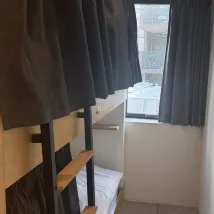 This hotel is really great and very-very clean. The things is I booked the hotel during Golden Week, so it got crowded but still having a nice stay. Kyoto Station is within 5 mins walks. The kitchen and public spaces really good and nice plus it has rooftop area which you can view the surrounding street from above. Things that I think can be improves are; should added more space in the cabin for bag and things, the lights inside the cabin was to bright and unadjustable. But overall great hostel with great service, accomodation and location. I do really want to have another stay here if I ever visit Kyoto again. But maybe will be upgrade to single room, hehe.