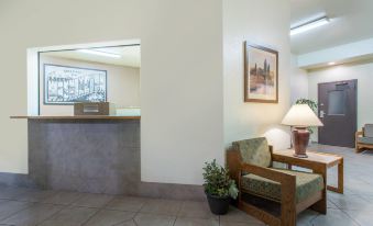 Worst hotel I've EVER stayed at! Dark brown painted doors gave that non-cheerful, eery look. Even walls had brown paint. Gap in window allowed all freeway noise and heavy drafts into room, so I was forced to jam a screw under it so I could sleep. All 3 lamps mismatched. Throw pillows for bed. Paint, stains and holes on the 1 chair in my room. People sitting in their cars all night, along with homeless people sneaking in. Bathroom fan didn't work. Very few towels. Couldn't swivel tv to see from desk. Could hear tv from 4 rooms down the hall. 1 tiny wastebasket. Microwave so small none of my cups fit. Stoppers out of sink and shower drains. Smears all over mirror. Horrible paint job all over building showing rookies painted and didn't use tape. Refrigerated waffles you put in toaster? Not me! Luke warm coffee right after breakfast started being available. This was a huge mistake staying here! I even swept on top of the covers in my clothes to lessen the risk of possible bed bugs. This place appears to have been built in the 50s or 60s with never any upgrades or modernizations. NEVER AGAIN will I stay here! I was afraid to go to my car after dark because everywhere I looked there were people in cars for hours if not all night. ONLY positive thing about my stay was the low price I got through *******. But apparently you get what you pay for!