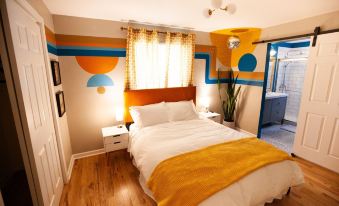 Whether you're seeking a relaxing spot to hang in the yard or an adventurous getaway, our home is the perfect destination. Our little Bungalow is located right in the heart of Old Town Lafayette and is only 3 blocks from all the restaurants, shops, breweries this lovely town has to offer. If you prefer to kick back and relax at home, you'll love sitting around the fire pit in our spacious back yard or going for a soak in the hot tub. This place is perfect for small families, groups of friends, or two couples. The space is meant for people who like to chill out with their squad or catch up with old friends while adventuring around. You can cook or grill at home or easily walk into town and enjoy dinner on a patio at a handful of unique eateries. You'll have the chance to stroll to a local brewery for live music, bike around and enjoy the art displays, or hike the trails at the scenic Waneka Lake. Lafayette is a charming, fun and eclectic little slice of heaven that we love to call home. We have a huge fenced in yard with a dining table, lounge area with a fire pit and a hot tub! The fire pit is a cozy little area thats intended for sharing stories and looking for stars. The hot tub is perfect for those who spent their afternoon hiking around Boulder, Golden, or any of Colorado's magnificent outdoor adventure destinations. Here for a sporting event or completing a race? Just wanting to relax? This hot tub is the ONE to melt your achy muscles into full recovery mode. The inside of our home is very colorful - we love funky art and bright colors. The first bedroom has a queen sized bed with a connecting bathroom. The second bedroom also has a queen sized bed and the bathroom is located directly next to it. We have a full kitchen with a stovetop, toaster oven, blender, rice cooker, microwave. Basically if you have the ingredients, we have the items you need to be able to prep and cook your meal.About pets:Pets allowed: dogs (limit 2 total).About checkOut:Check out before 11:00 AM.About children:Children allowed: ages 0-17.We don't provide amenities/safety for young guest.About checkIn:Check in after 3:00 PM.About smoking:Smoking is not permitted.About minBookingAge:Minimum age to rent: 21.About events:No events allowed.