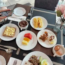 About breakfast, over three days, the breakfast menu lacked variety and showed little effort. Most items were repeated daily: baked beans, baked potatoes, beef patties, samosa, nasi lemak, and either fried noodles or vermicelli. The chicken was cut into tiny pieces and not replenished after 9.00 AM, only bony scraps were left for late guests. Despite these issues, I must commend the waiter, who worked efficiently to keep tables and used plates clean at all times. The egg station was also well-run, with prompt and accurate service. Still, overall breakfast quality was 2.5/5 at best.