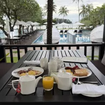 Breakfast was delicious and I enjoyed the music played by the pianist. I also enjoyed the little treats brought pool side for us to enjoy.