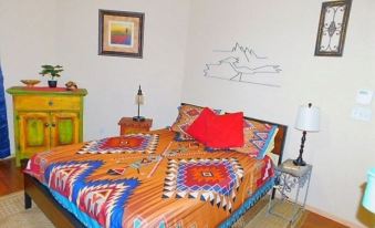 This studio casita is detached from the main house and offers a living area with a queen size bed, and 1 bath. There is a kitchenette in the living area as well. Kitchenette has a mid sized refrigerator, studio sized dishwasher, coffee maker, hot plate, and a convection microwave. Private entry with a gated off patio area. Quiet neighborhood close to main street and Interestate 25. Wifi and streaming channels available. The bathroom has a big walk-in shower, linens, hairdryer, and a closet for hanging clothing. There are two suitcase benchs. USB port on the bedside table for charging your devices. Off street parking. About pets:No pets allowed.About checkOut:Check out before 11:00 AM.About children:Children allowed: ages 0-17.This is a small studio casita with 1 queen bed..About checkIn:Check in after 2:00 PM.About smoking:Smoking is not permitted.About minBookingAge:Minimum age to rent: 18.About events:No events allowed.