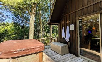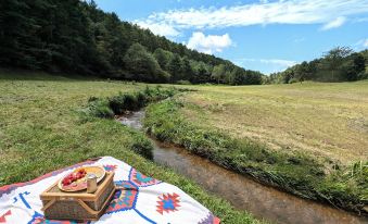 Or are you looking for more unique places to visit? Take a drive to The Puckett Cabin - historic milepost 190 on the Blueridge Parkway or Fancy Gap Pottery and Fabric Outlet (15 min drive). Looking for an authentic German dinner show? Head out to Wohlfahrt Haus dinner Show- Wytheville, VA (25 min ). We are in the perfect location to access many unique areas in Virginia and North Carolina. Travel to nearby Buffalo Mountain for a breathtaking Piedmont view hike, ride gravel or mountain bikes on the New River Trail (a 57-mile rail-to-trail starting in Galax, VA). Or, just sit on the covered porch that overlooks the creek from a distance, have a hot soak and listen to the quiet.
