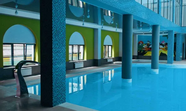 The on-site restaurant serves homemade dishes and pastries. Guests can spend time in the pool, visit the dolphinarium. The hotel also provides entertainment for visitors of all ages: there is a playground for children, and billiards and bowling for adults. A private car can be left in the parking lot.