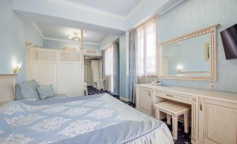Standard, Superior, and Suite rooms are available for booking. Each of them is equipped with a TV, refrigerator, safe. The private bathrooms are equipped with a bath or shower. Some rooms have kitchen corners and balconies.