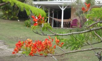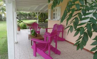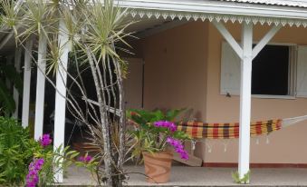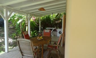 F2 modern and well equipped down villa, garden view, quiet and peaceful. 1 air-conditioned room with garden view, living room with sofa-bed, kitchen. Corner veranda with table, chairs and armchairs, hammock with a beautiful view flowery garden. TV and wi-fi possibility cot and baby equipment.