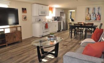 The rental is located outside of a mobile home park down a peaceful quiet lane with 2 other residences. The home is equipped with all the necessities including some cozy throw blankets for the couch. We were in town for a barbecue competition at Wilson County Fairgrounds and found the home to be convenient when going back and forth to the competition. There is plenty of nearby restaurants and shopping. We enjoyed our stay and would definitely stay again. The owners were great to work with as well!