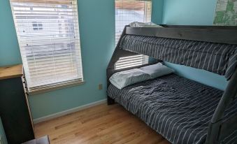 Full and twin bunk bed in 2nd bedroom. Sleeper couch in living room.