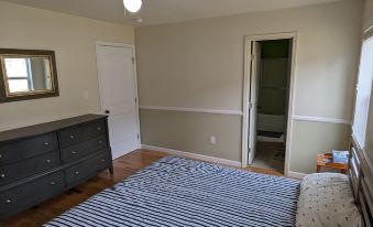 Two bedrooms. One king-size bed. Covered back porch overlooking the river.