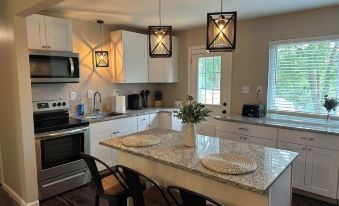 Step into modern elegance with granite countertops and contemporary furnishings that create an inviting atmosphere. Sink into blissful sleep on memory foam mattresses that ensure a restful night after a day of adventure. Each room is equipped with Smart TVs, allowing you to unwind with your favorite shows or movies.