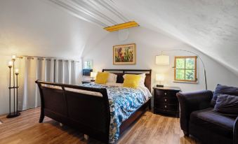 Please see the photos. The main living space requires a flight of stairs to access.About pets:Pets allowed: dogs (limit 1 total).About checkOut:Check out before 10:00 AM.About children:Children allowed: ages 0-17.About customRules:Clean up after dogs in mowed areas..About checkIn:Check in after 3:00 PM.About smoking:Smoking is not permitted.About minBookingAge:Minimum age to rent: 18.About events:No events allowed.