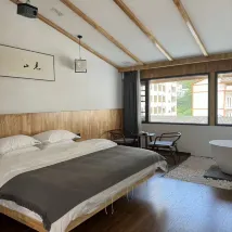 The boss helped us upgrade our room for free, and took the initiative to introduce how to visit the scenic spot. The location was easy to find, and there was an elevator. The hotel also has a great sense of design.