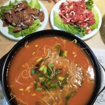 The Libo Station through bus driver sent us to the store, and the boss upgraded us to a suite for free. The sour soup beef hotpot tasted good. The boss also sent us to the west gate of the scenic area. There is a luggage check-in high-speed rail station at the entrance of the scenic area (20/piece), which is convenient.