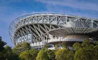 Nearby attractions to Olympic Park Stylish 2BR | Walk to stadium | Pool & Gym include Stadium Australia, only 300m from your search (straight-line distance) away.What are Olympic Park Stylish 2BR | Walk to stadium | Pool & Gym nearby landmarks?