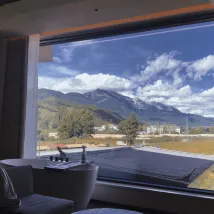 Environment: The large floor-to-ceiling window overlooks the snowy mountains, and the view is stunning when the weather is good.